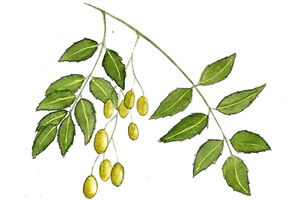 Le Neem pousse vite et son feuillage est épais : c’est un arbre d’ombrage présent dans la plupart des concessions. Son huile a des propriétés antibactériennes, antifongiques, insectifuges et médicinales, sont connues depuis l’antiquité en Inde, dont il est originaire.